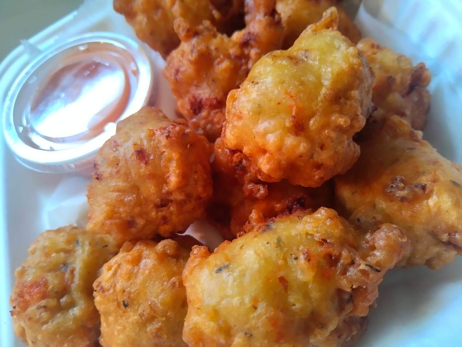 Place your order at the screened window at 2 Shorty’s and then find a seat at the nearby picnic table. All the local dishes are cooked fresh to order. It’s a very popular takeaway spot for locals and their fried chicken is particularly good.