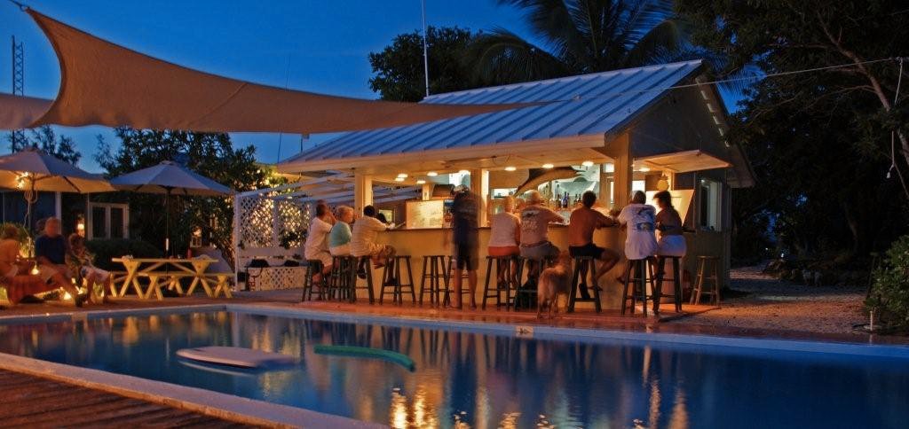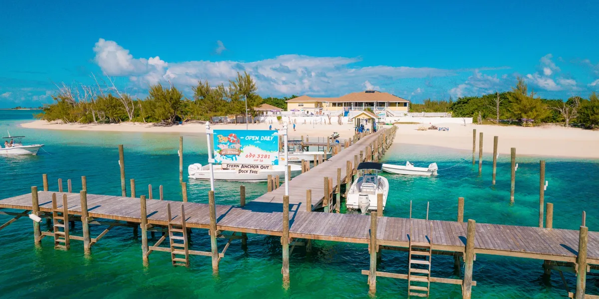 The beachside bar at Bluff House, perfect for grabbing island food and tropical drinks while overlooking the Sea of Abaco.