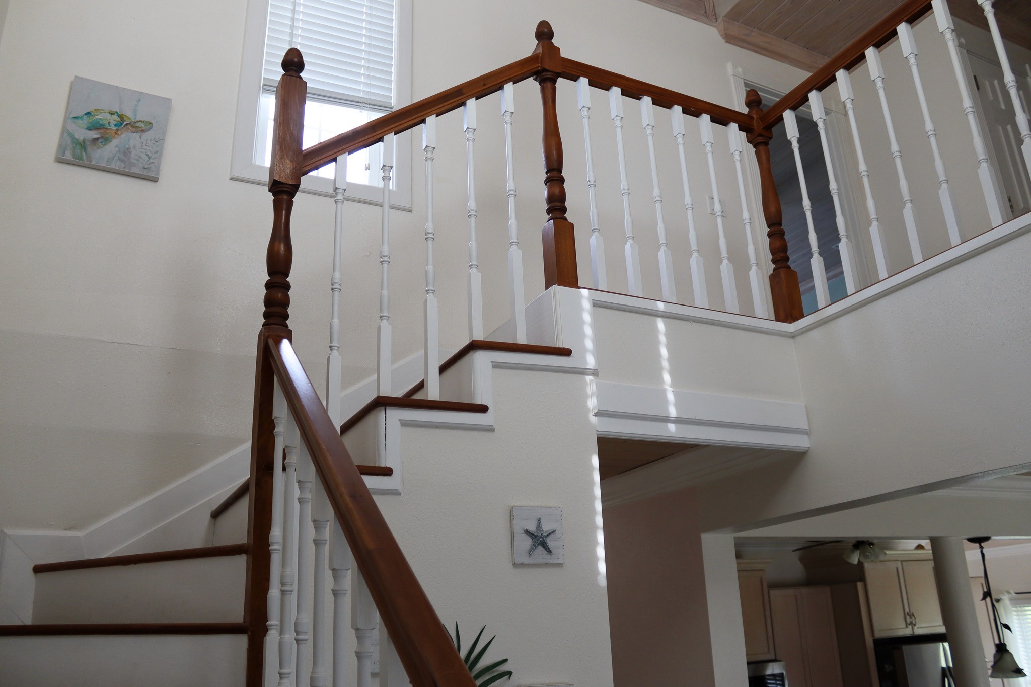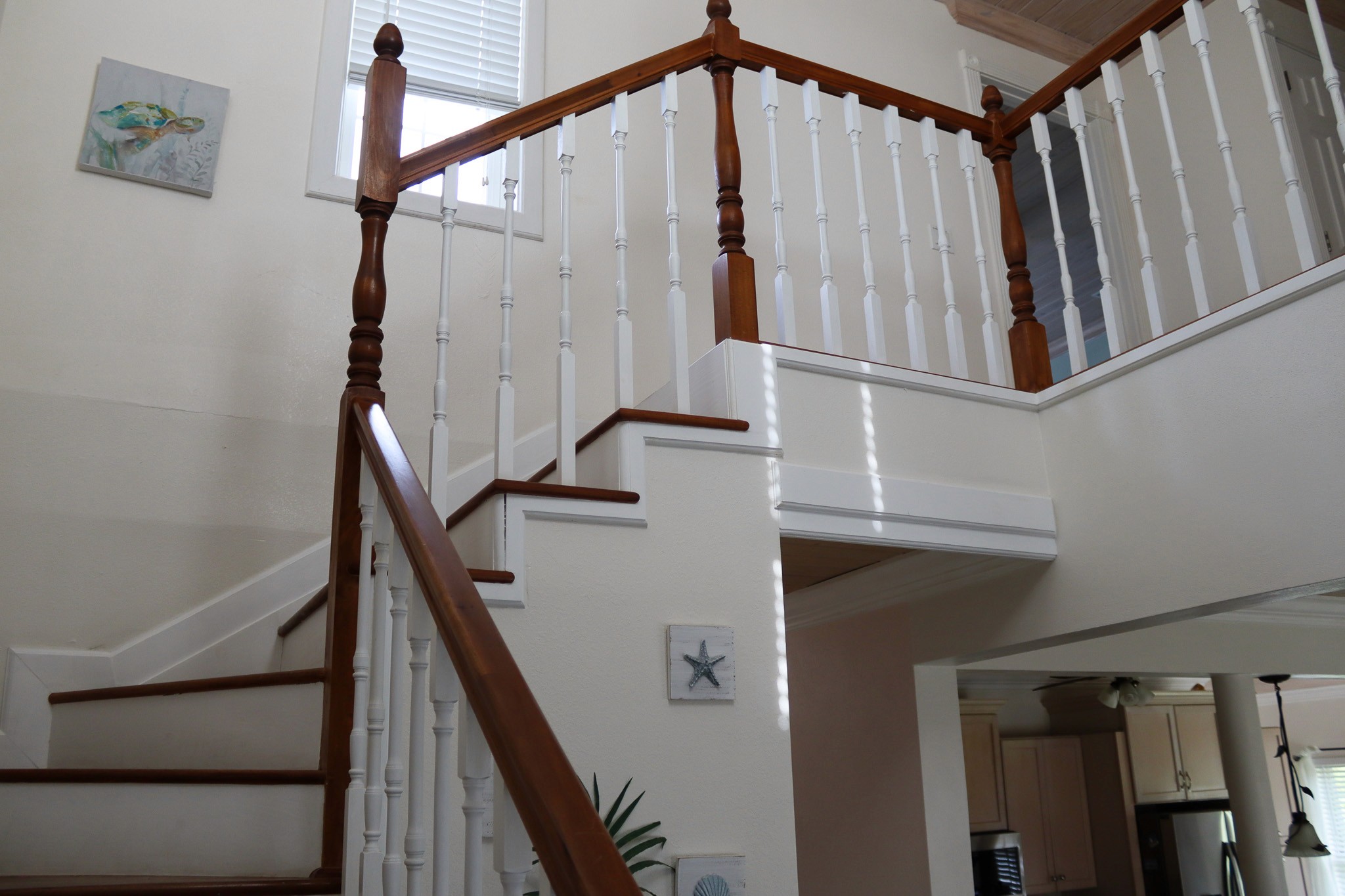 Bed configuration: upstairs: 1 queen + 1 full and 1 king; downstairs 1 Queen (4 beds in total)