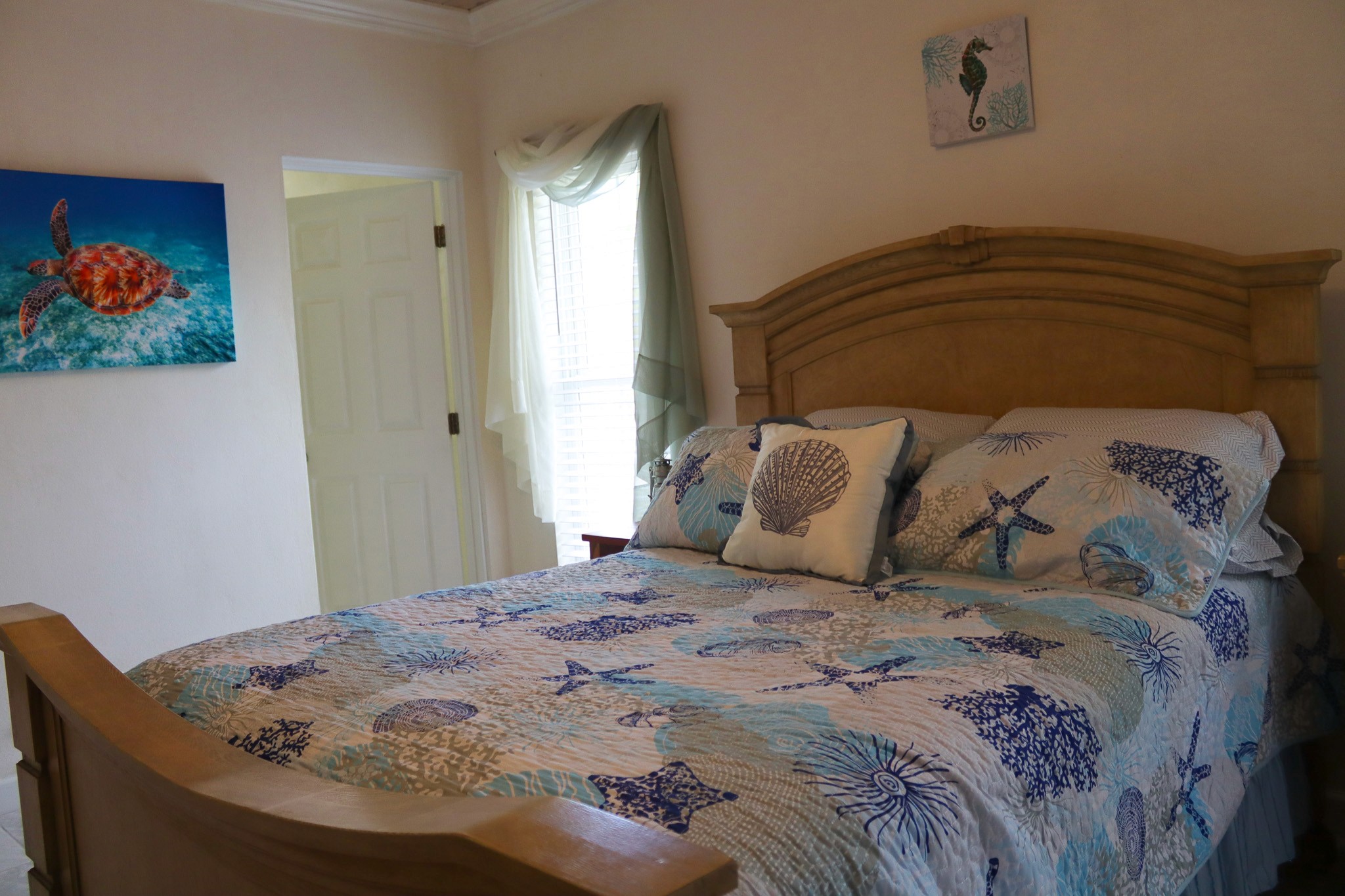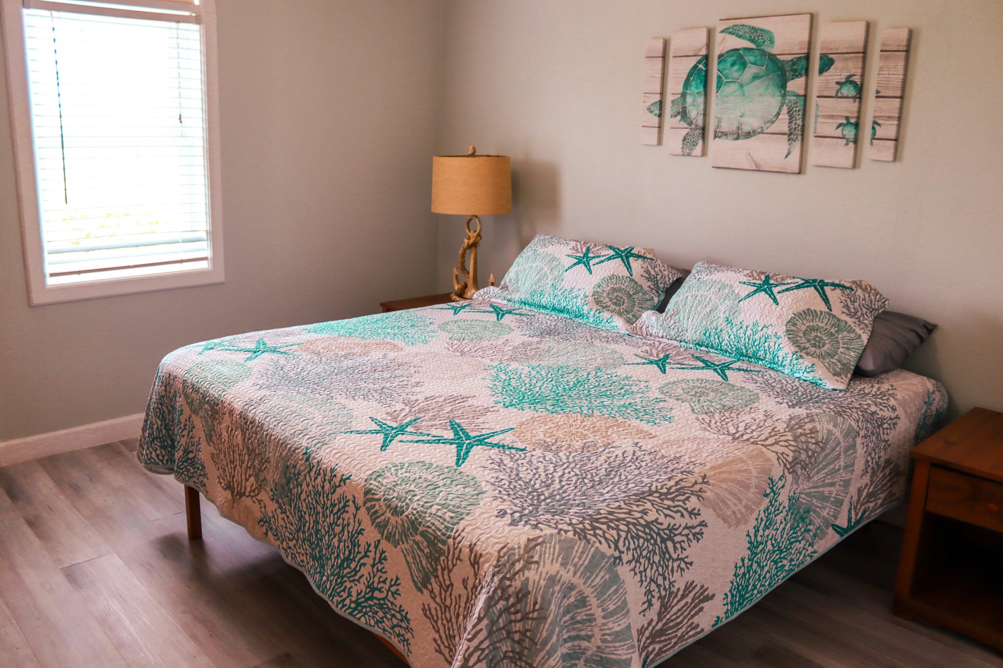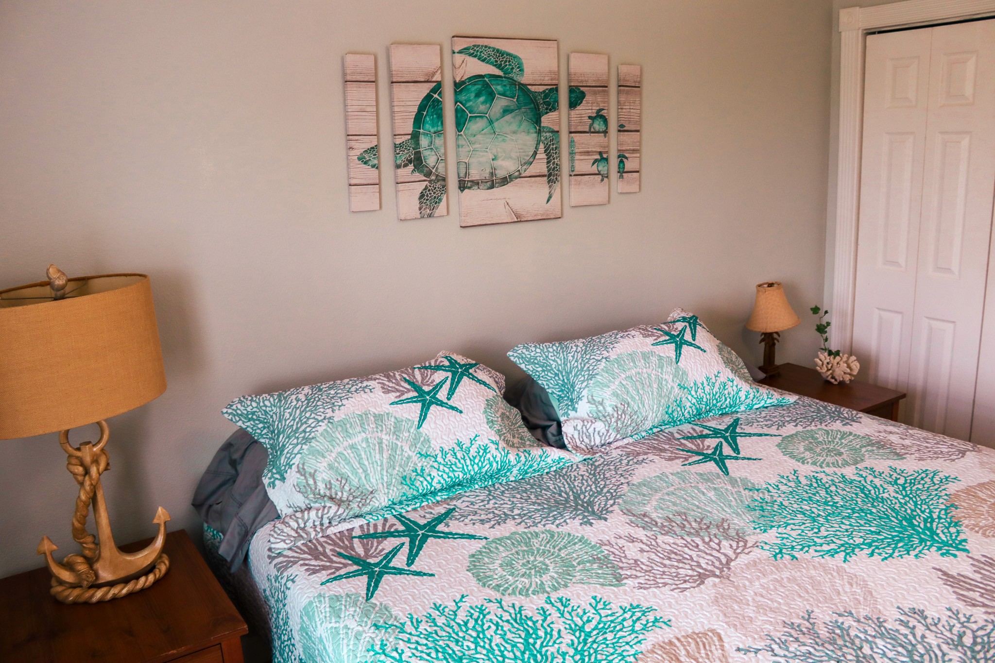 A Shore Thing Cottage offers three spacious bedrooms and two-and-a-half bathrooms, comfortably accommodating up to 8 guests. The beautifully appointed rooms are thoughtfully designed to provide plenty of space for families or small groups to relax and rejuvenate after a day on the water.