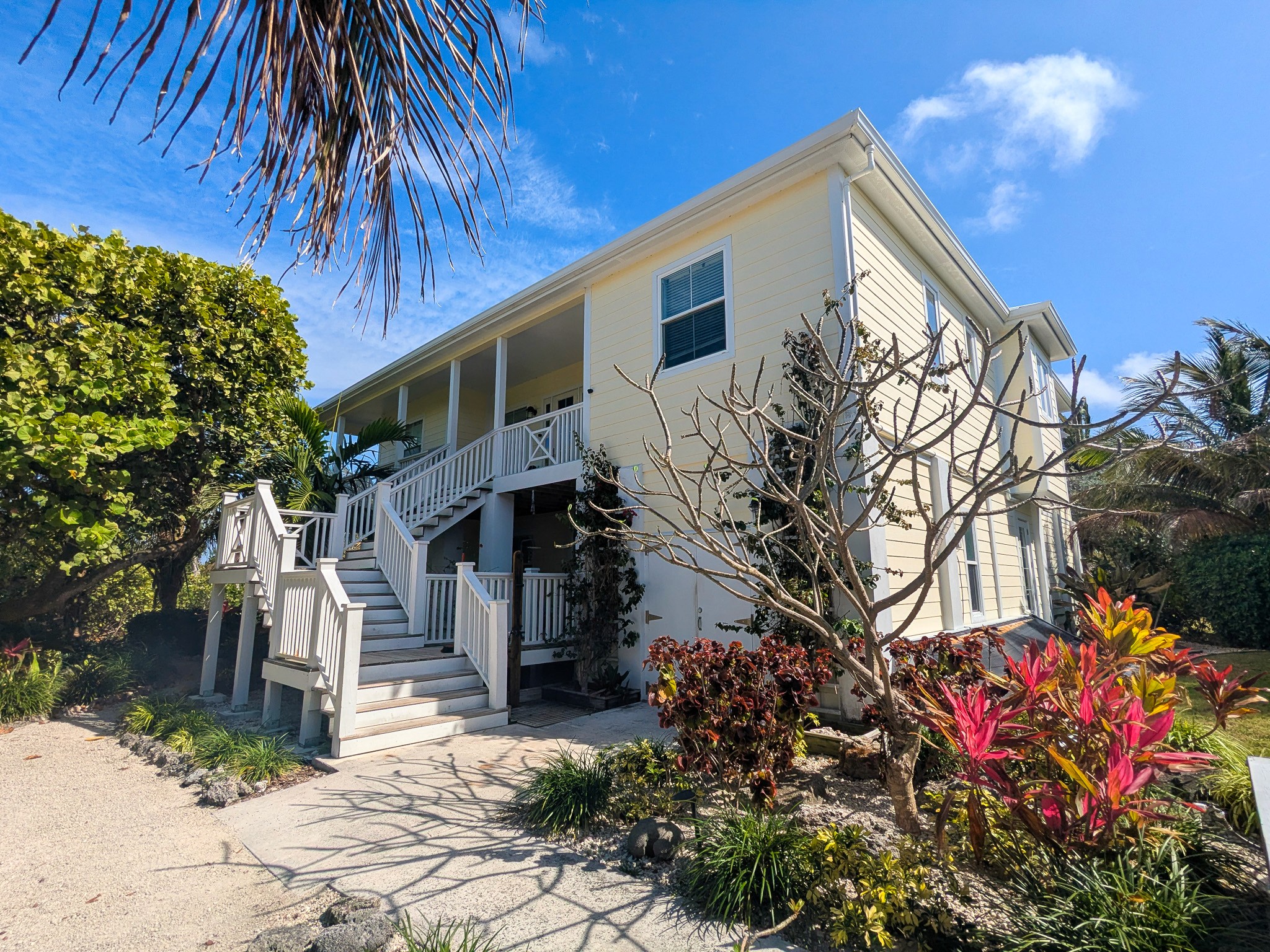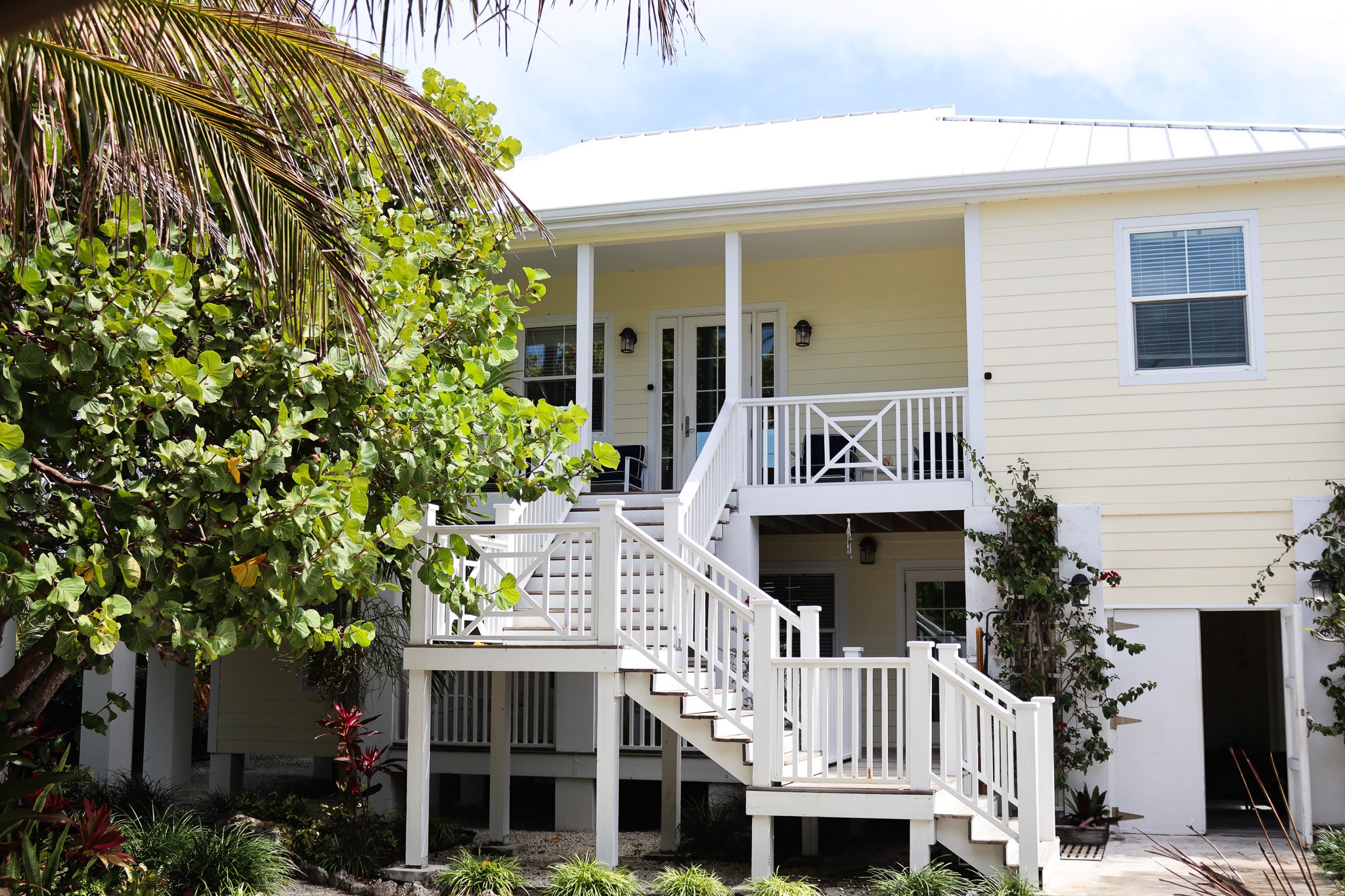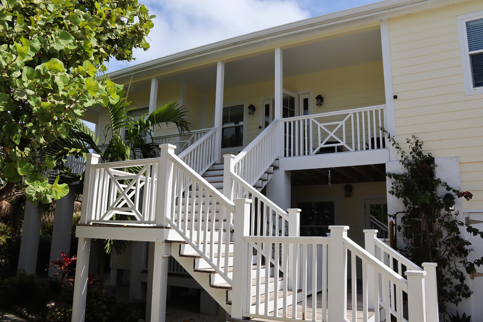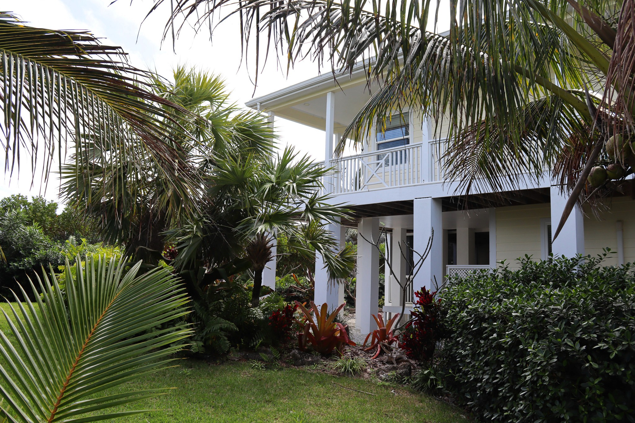 The home is designed with your comfort in mind, whether it’s enjoying the garden/ocean setting from inside or out on the wrap-around veranda. The main level has a master suite with a king-size bed and ensuite bathroom, a second bedroom with a queen-size bed and bathroom adjacent, a den with a daybed, comfortably sleeping 5. The lower level has a bathroom and two bedrooms, one with a queen-size bed and the other with two twin beds, sleeping an additional 4 people.