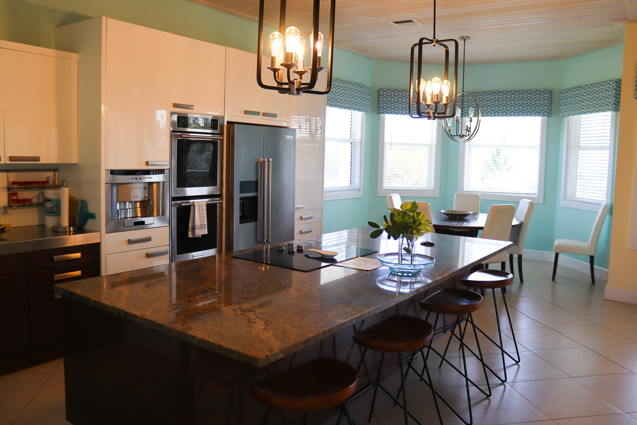 Bananaquit is a truly spectacular modern/tropical home in one of the most desirable areas of Green Turtle Cay: steps from Bita Bay beach, close to the historic town of New Plymouth and close to a public dock. It is nestled in a beautiful garden setting with lovely ocean views and its own private pool. The home’s inspiration comes from an ultra-modern gourmet kitchen featuring granite and stainless-steel countertops and luxury appliances (from the built-in AEG espresso/cappuccino maker).