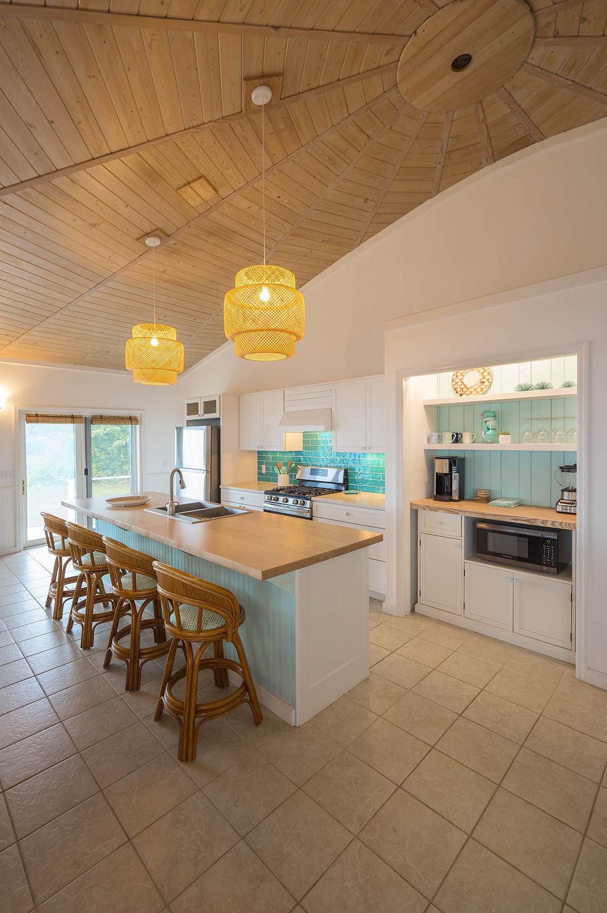 It is a truly unique perspective on some of the most beautiful water in the world (in our humble opinion!). The kitchen has everything you’ll need to whip up anything from a picnic sandwich to a gourmet meal. Chat with your family and friends at the huge kitchen island while you cook, then enjoy your meal either in the dining area or on the porch.