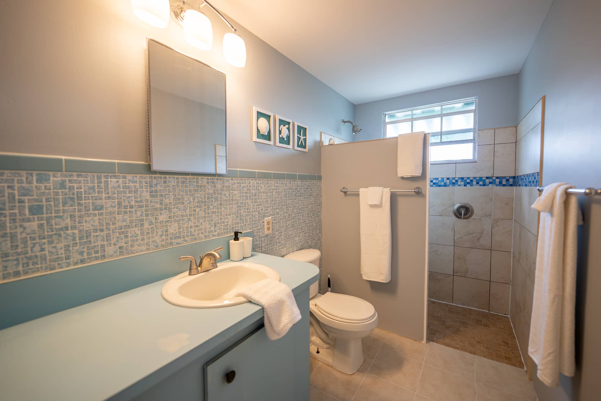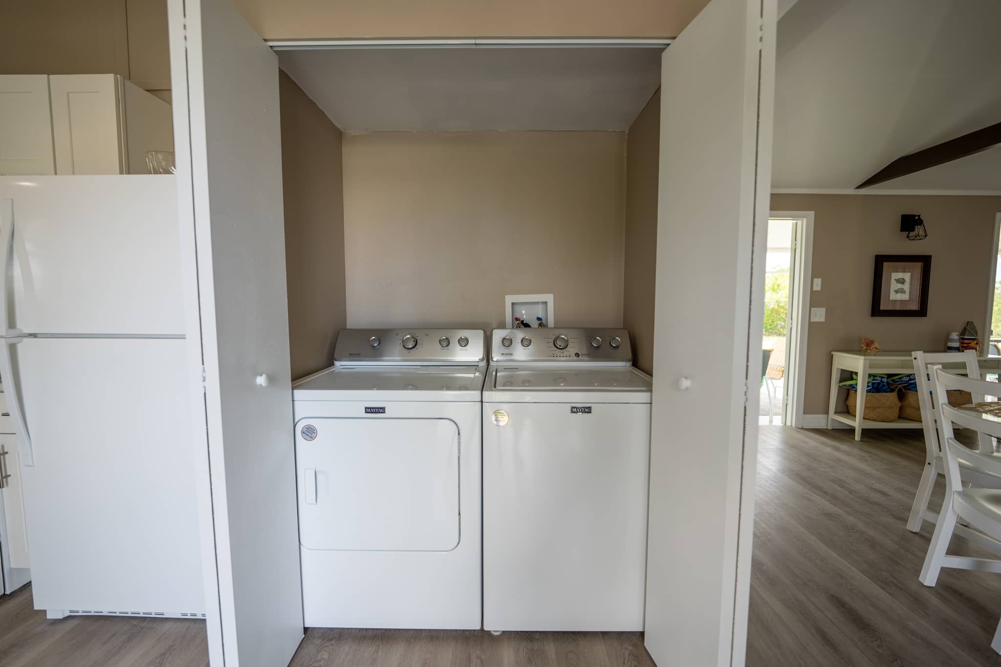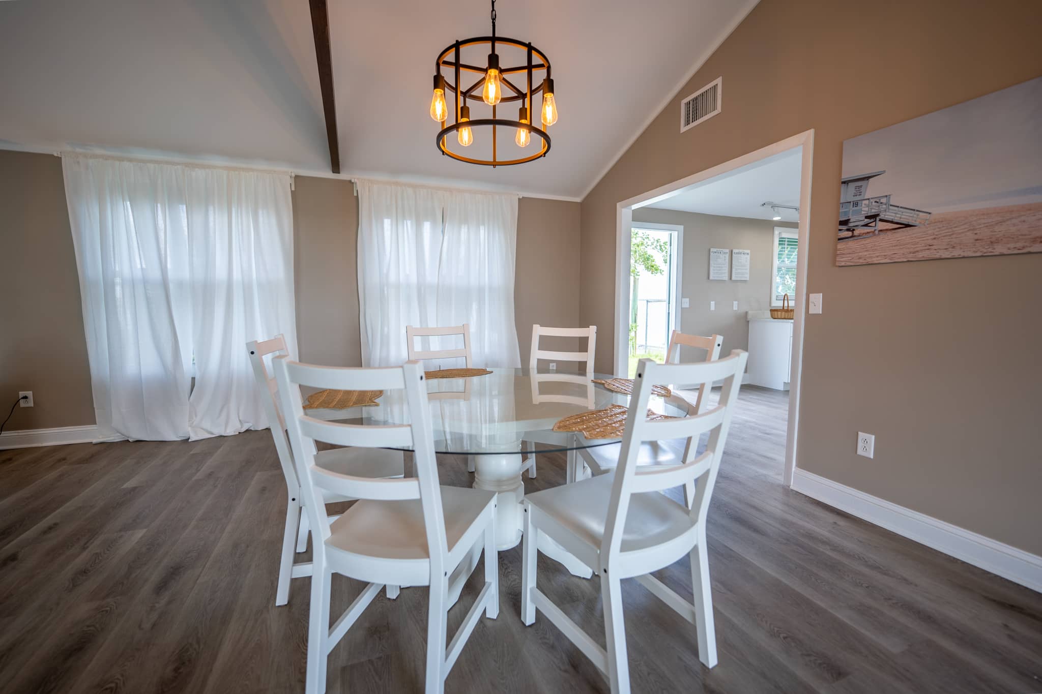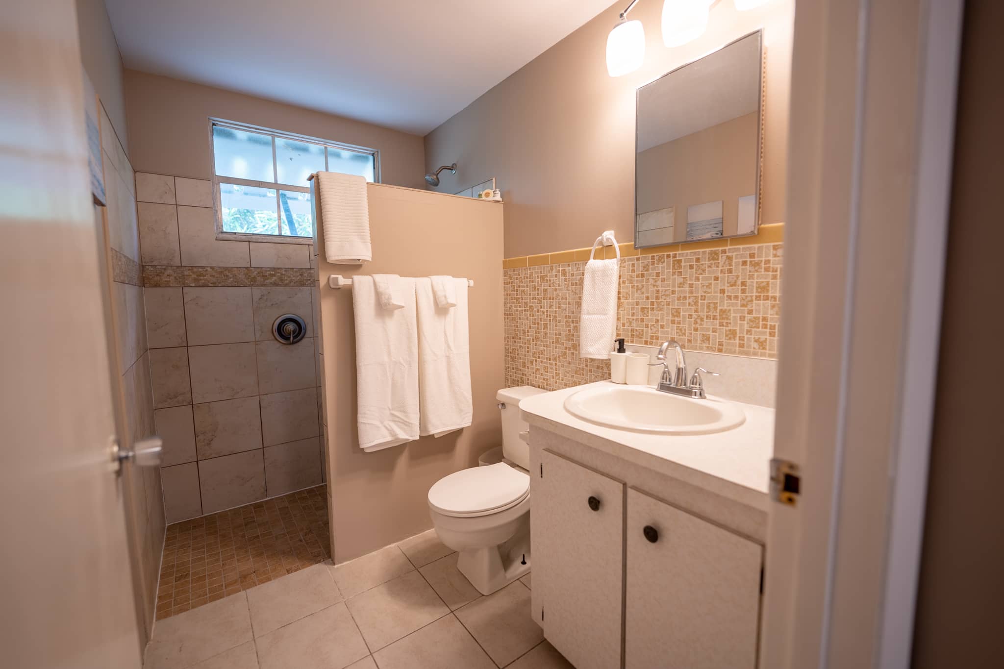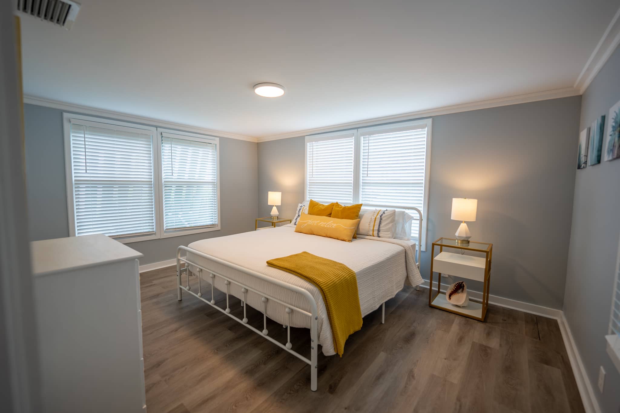 The cottage has been completely renovated with all new furniture, beds and appliances. The cottage has an open-plan kitchen, dining and living room with French doors that lead out onto the large screened-in porch. The kitchen has everything you need to cook at home, should you decide to. The living room has a flat-screen TV with cable television and wifi. The master bedroom has a king-size bed, the second bedroom has a queen-size bed and the third bedroom has 2 twin beds. There are two full bathrooms and a laundry room with a washer and dryer.