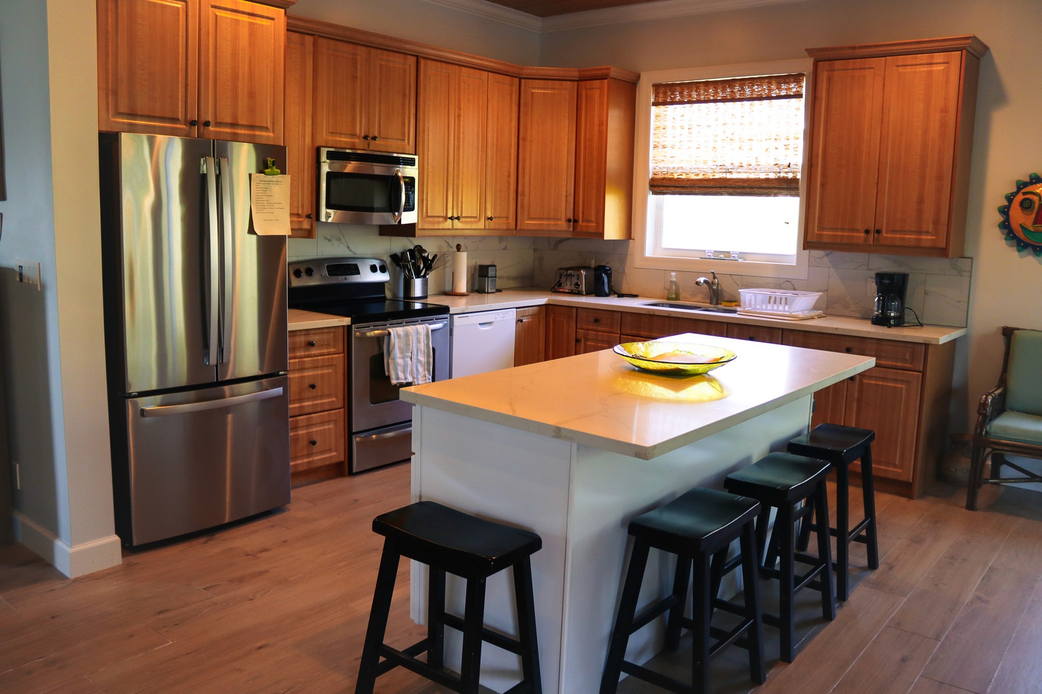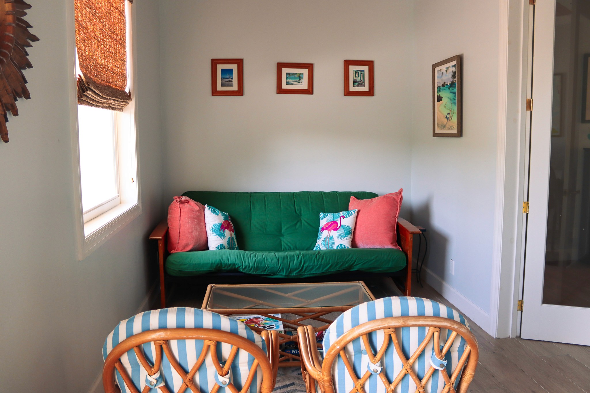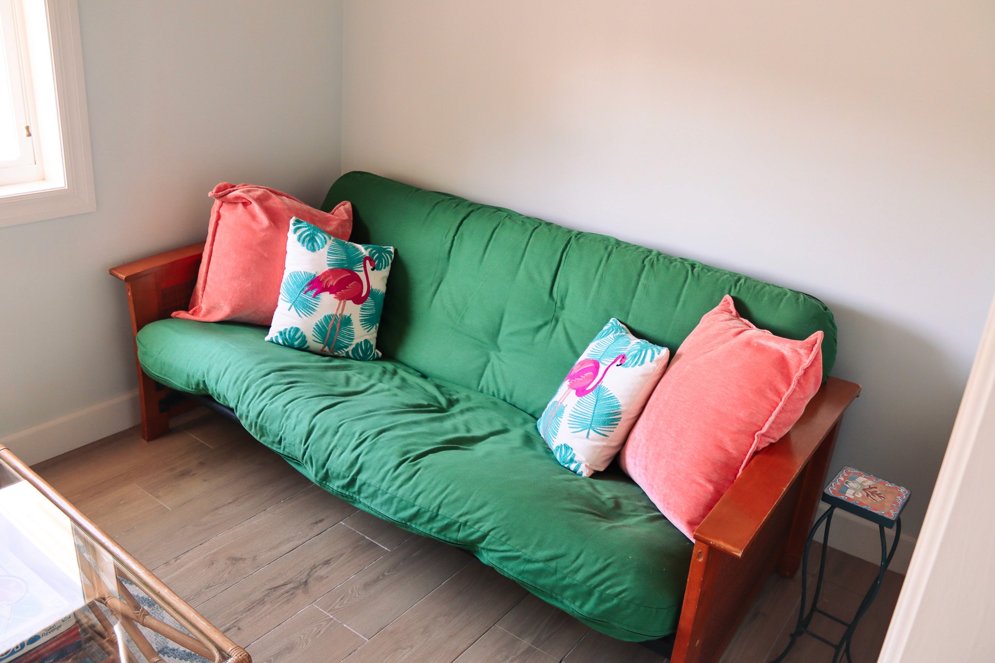 Coco Star’s master bedroom has a king-sized bed and ensuite with a walk-in shower. The two guest rooms each have queen-sized beds and a shared bathroom. Finally, guests with a need for extra sleeping arrangements can use a spare room off the living room where a futon bed can be used to sleep 2 additional guests.