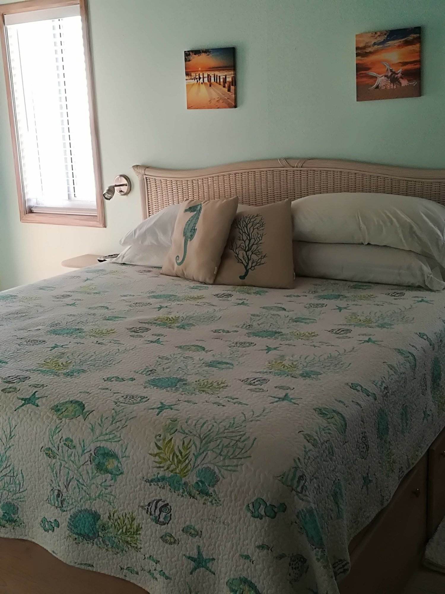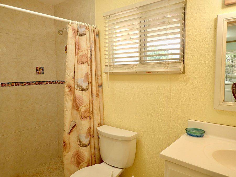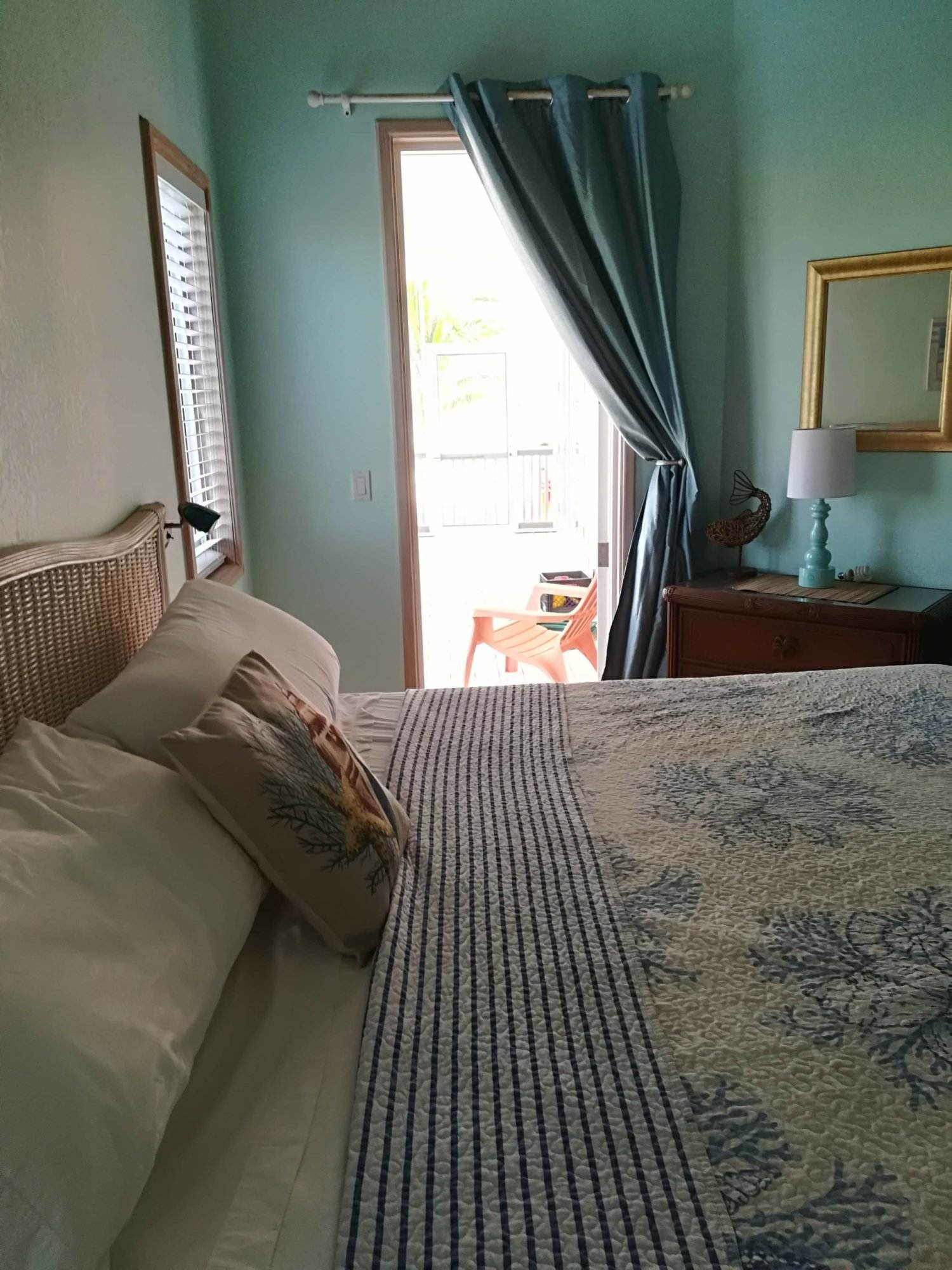 The house is split with upstairs offering three bedrooms and a separate 1-bed 1-bath studio apartment downstairs. The main house has 3 bedrooms and 2 bathrooms. The main master bedroom has a king-size bed, satellite TV and door leading out onto a screened-in porch. The master also has an en-suite with a walk-in shower and a separate toilet.