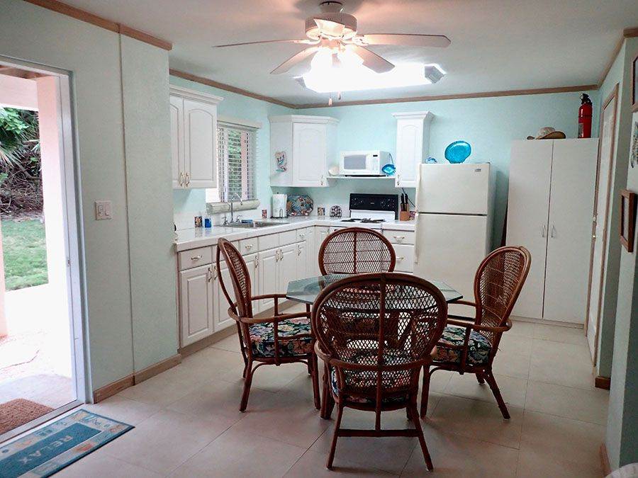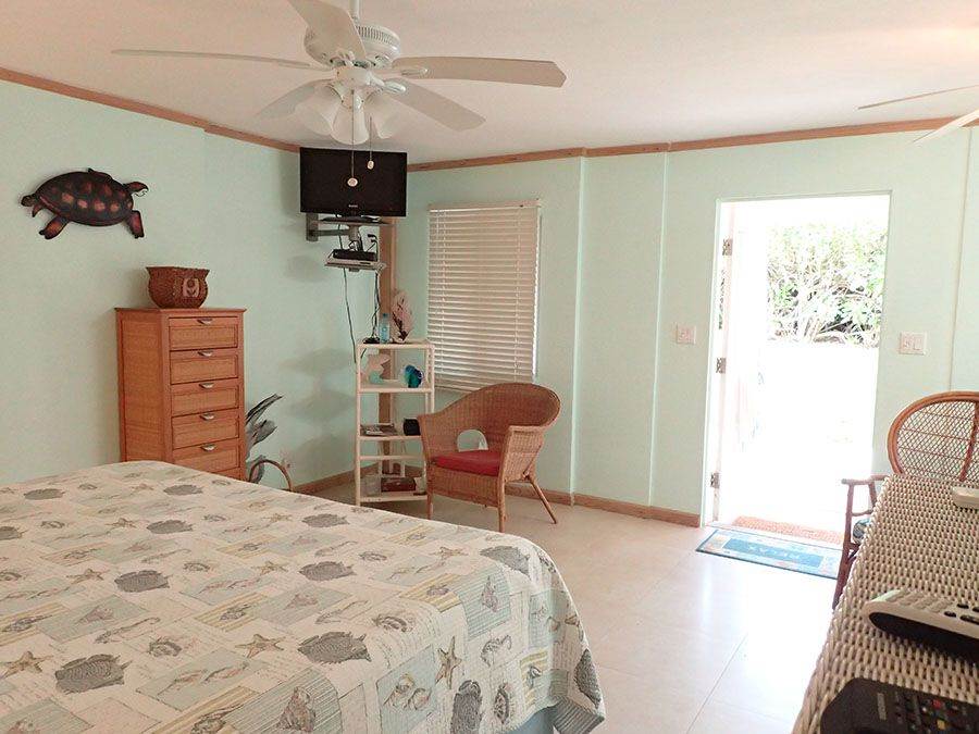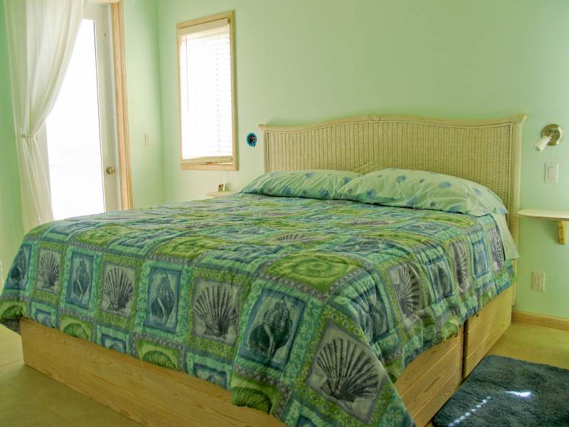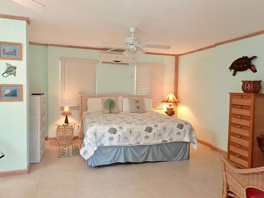 The downstairs apartment is a self-contained space with its own kitchen. The bed is a king with an en-suite offering a large walk-in shower. The apartment has a satellite TV and AC unit. It can only be rented with the main house, not separately, for an additional $1,050 per week.