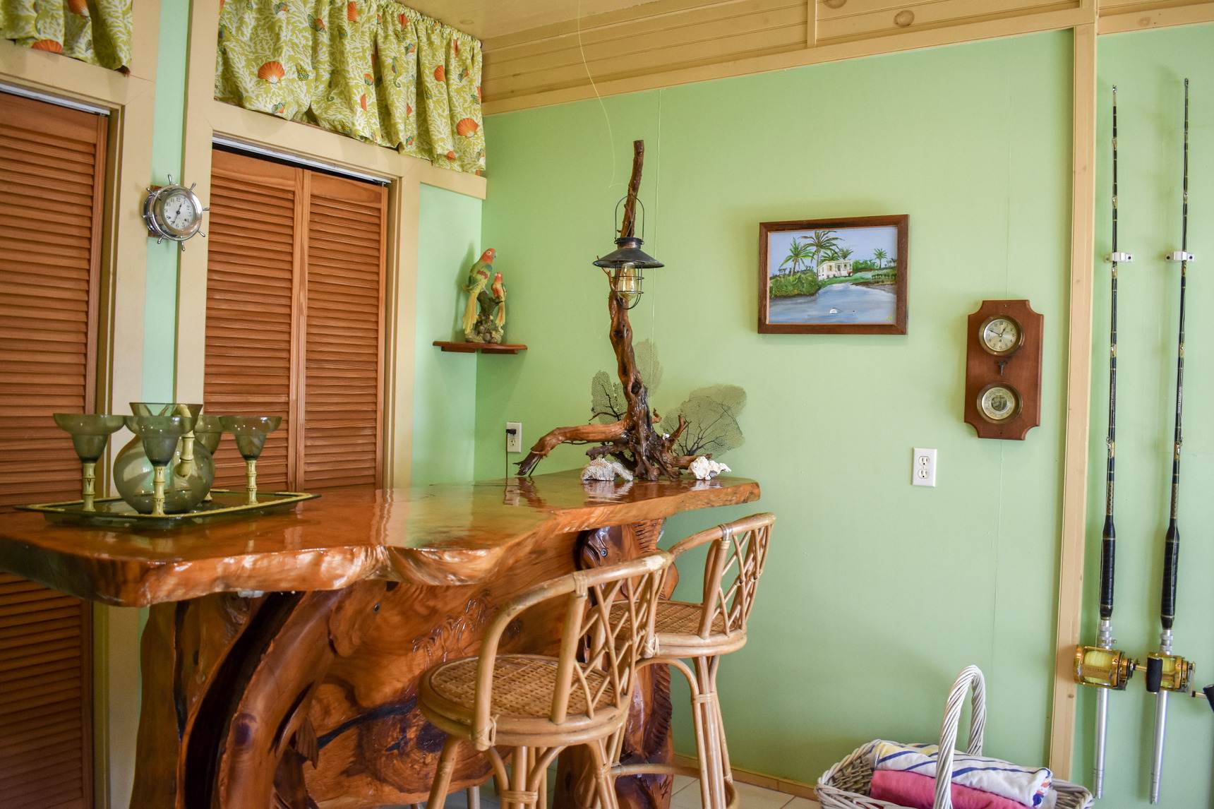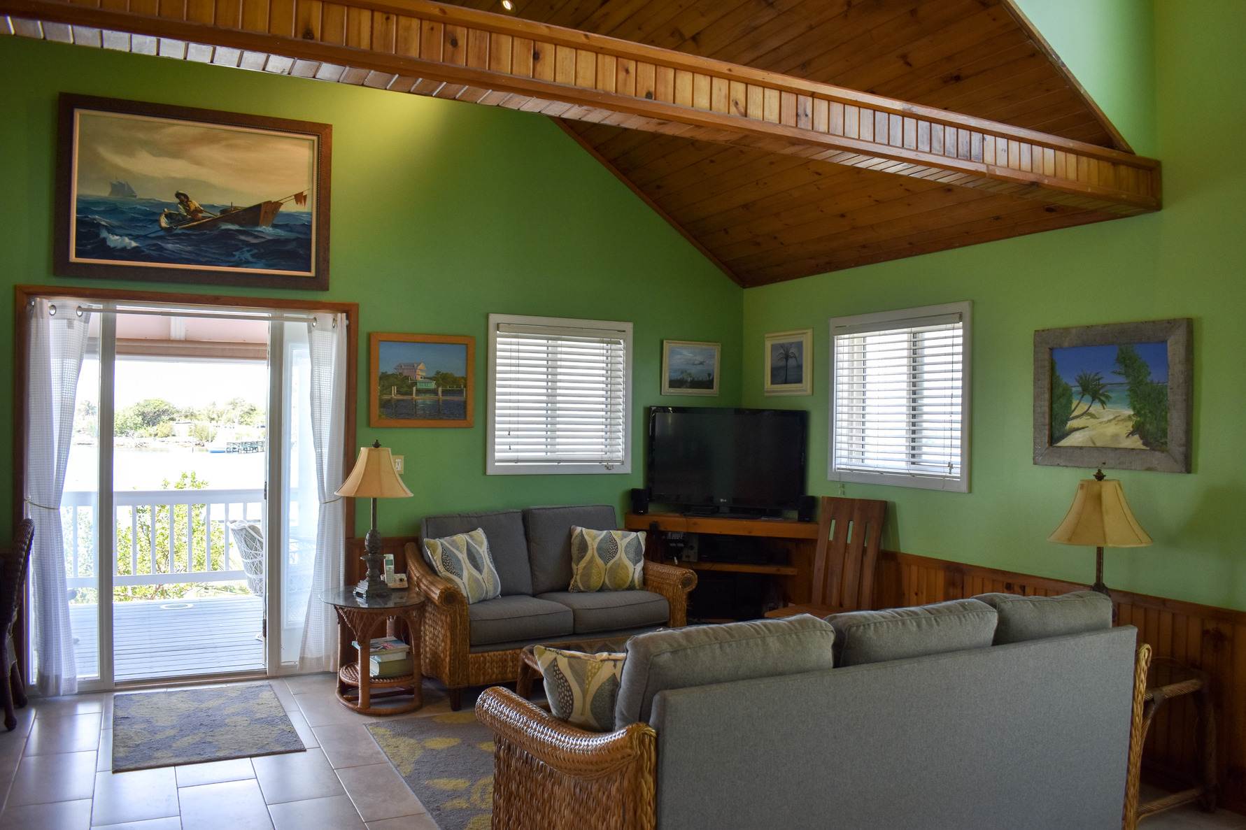 Dog House is centrally air-conditioned and sleeps six comfortably. Upstairs has a large, covered, front porch (great for entertaining or relaxing with a fantastic waterfront view!). On the main floor, there are two bedrooms fitted with Queen beds, an open-designed fully equipped kitchen, dining and living area, bathroom with tub/shower combo, satellite TV and WiFi router.