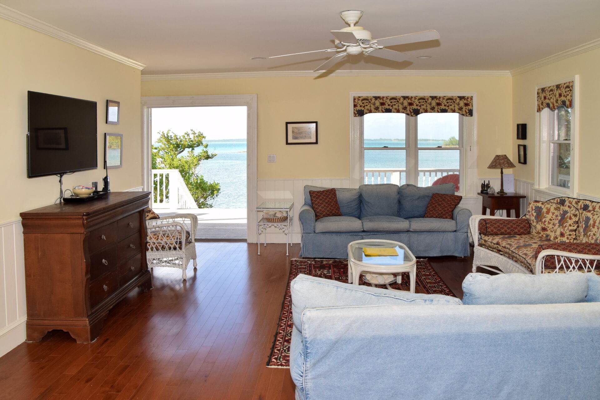 Outdoor activities are abundant at Island Gambol. There is a private dock and there are nearby beaches on the deserted islands of Fiddle and Crab Cay – both visible from the front porch.