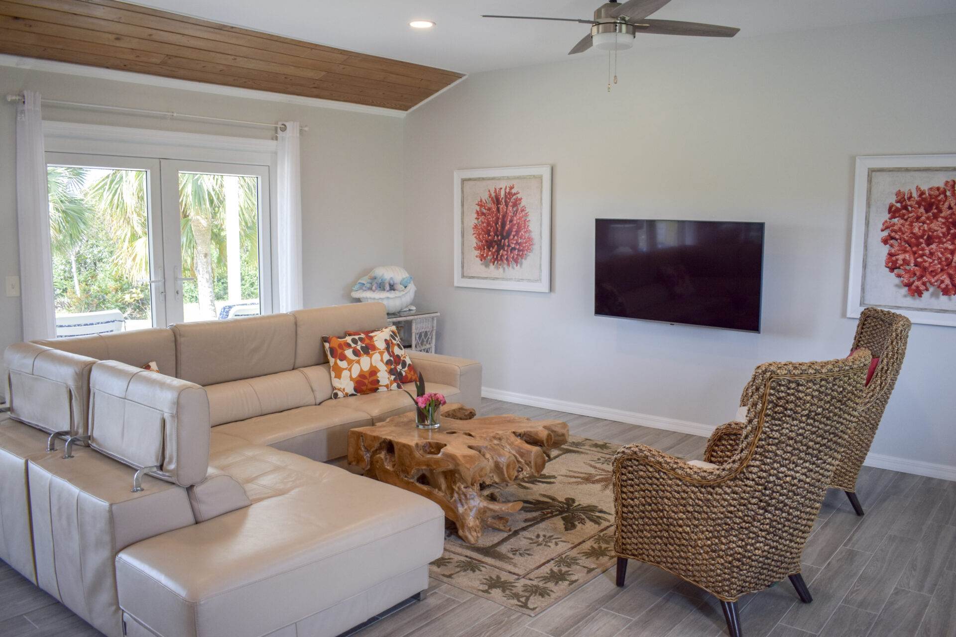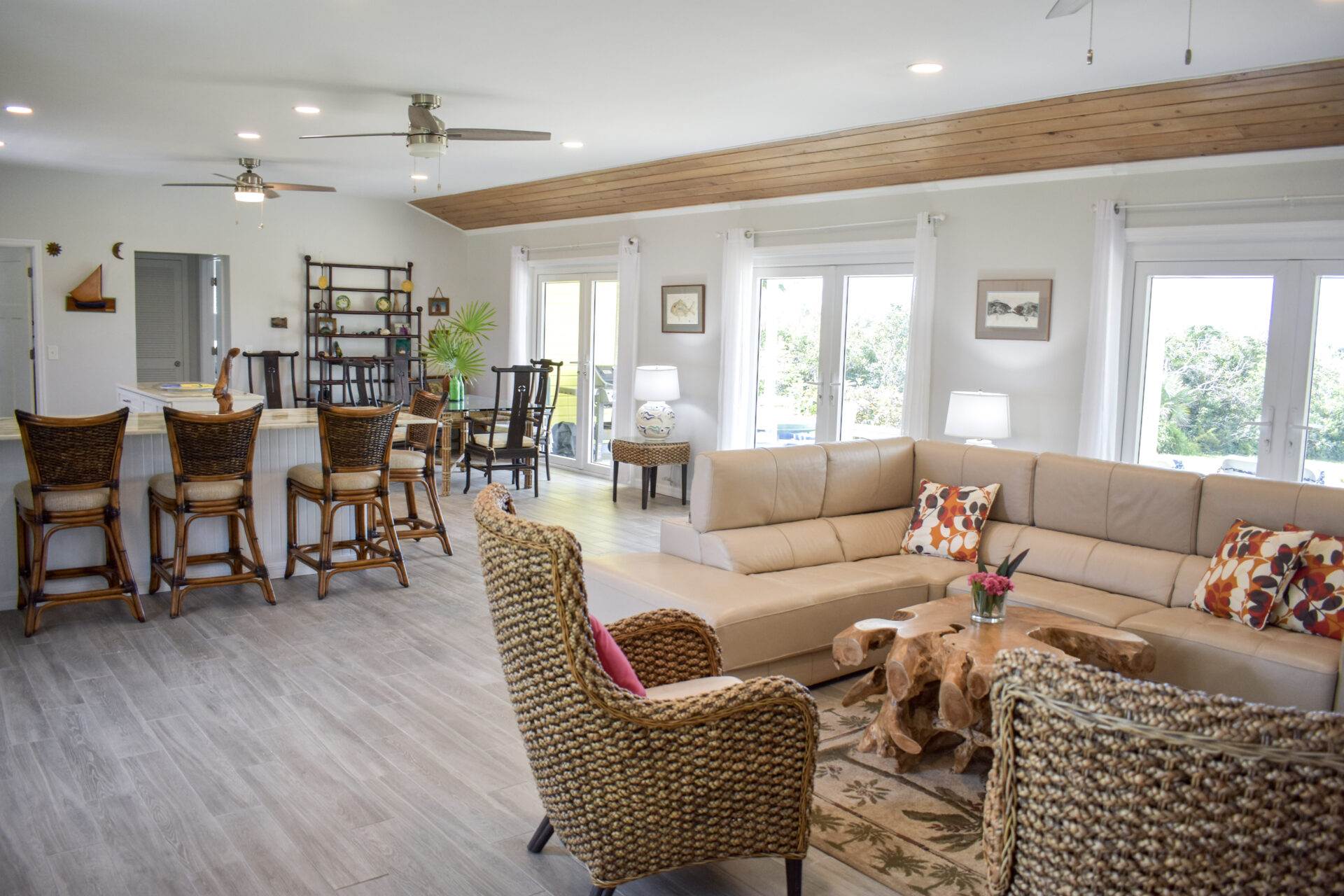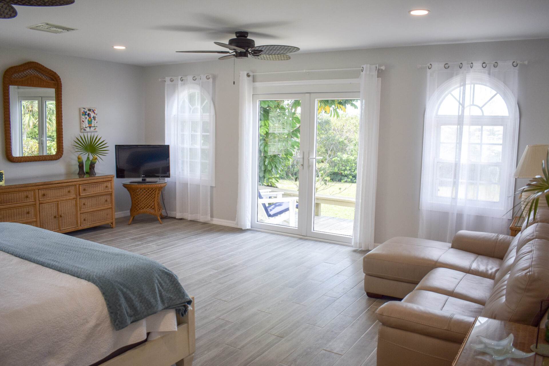 The home's convenience extends to boating; guests have access to a public dock just at the bottom of the garden for temporary tie-up, or can arrange private dockage at the Green Turtle Club and Marina. Oleander's location provides excellent beach access, with Coco Bay beach just a 10-minute walk away and Atlantic Beach reachable in about 12 minutes. With its generous, open layout and sweeping landscaped grounds, Oleander is truly ideal for families seeking a spacious, luxurious, and perfectly located base for their Abaco escape.