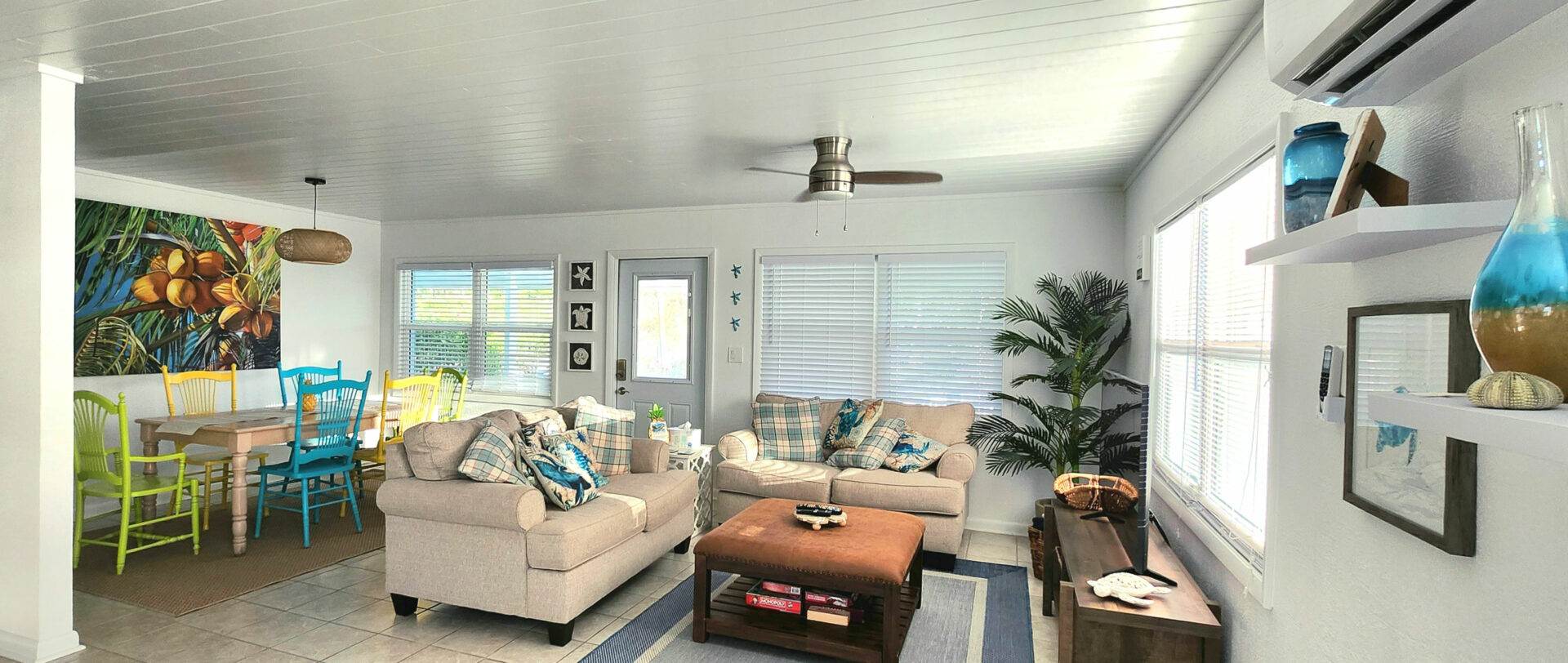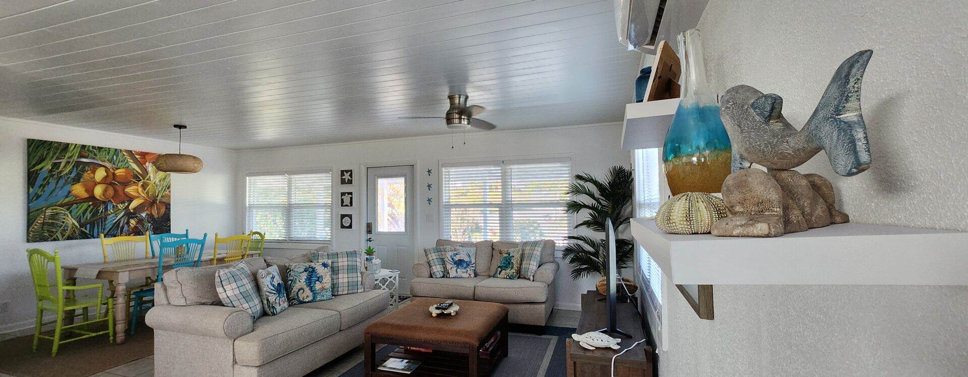 Discover the charm of On Va Cay, a 2-bedroom, 2-bathroom haven nestled just a short drive away from the historic town of New Plymouth on Green Turtle Cay. This delightful property offers a seamless open-plan living, dining, and kitchen area, creating the perfect atmosphere for relaxation and entertainment. The well-equipped kitchen features modern amenities, including a microwave, toaster, and coffee pot.