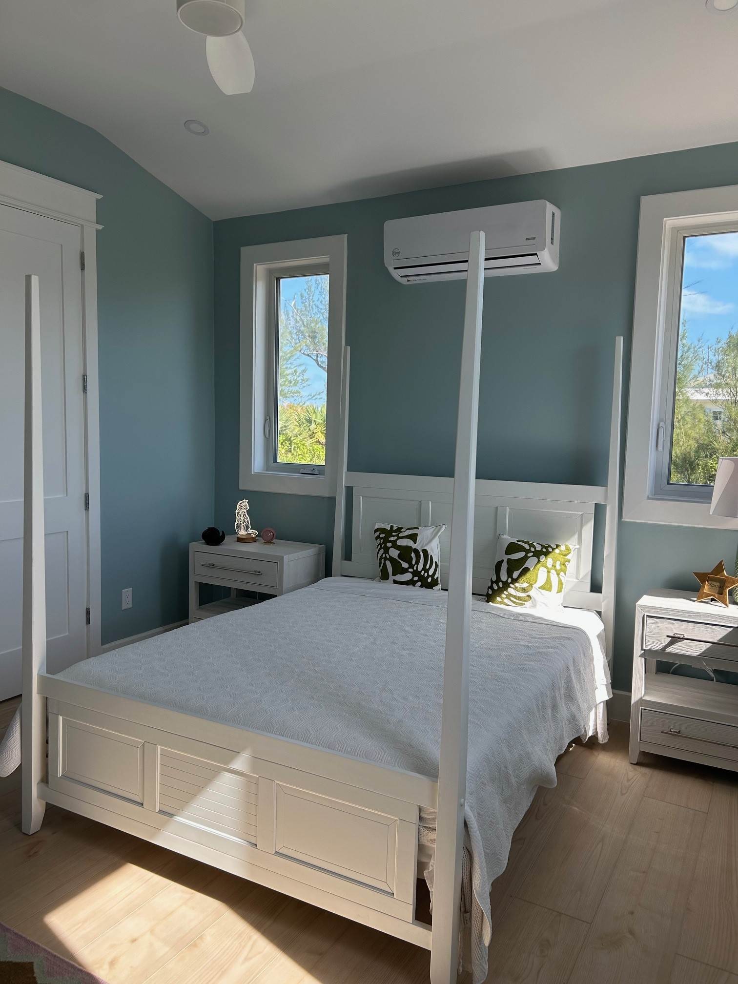 A sanctuary awaits on the Second Floor in the Master Suite. This peaceful retreat boasts a King-size bed, a private balcony overlooking the ocean, and panoramic Atlantic views (without curtains, ensuring an immersive experience). The luxurious space is completed by a large closet and a spa-style ensuite bathroom, featuring a deep soaking tub and a separate walk-in shower.