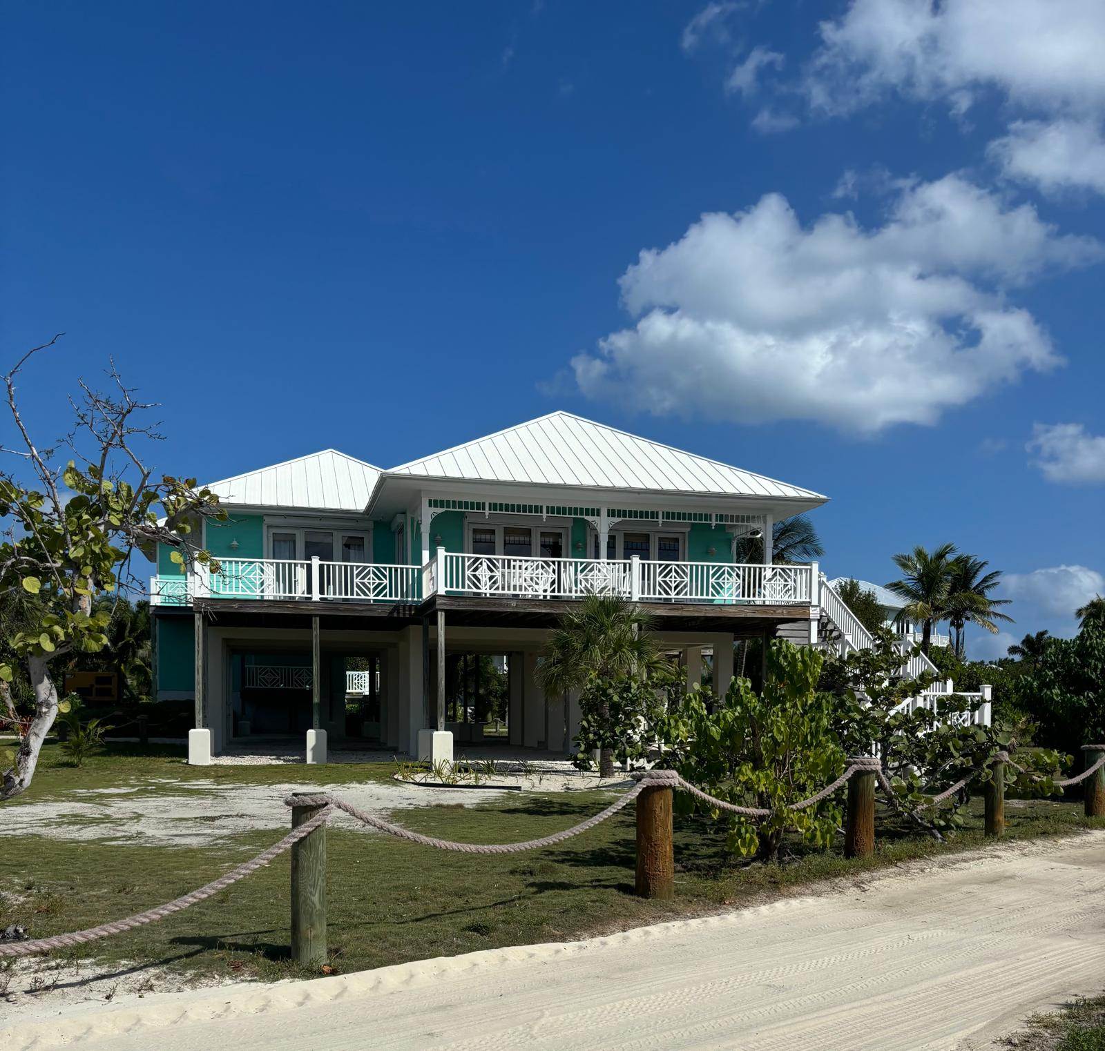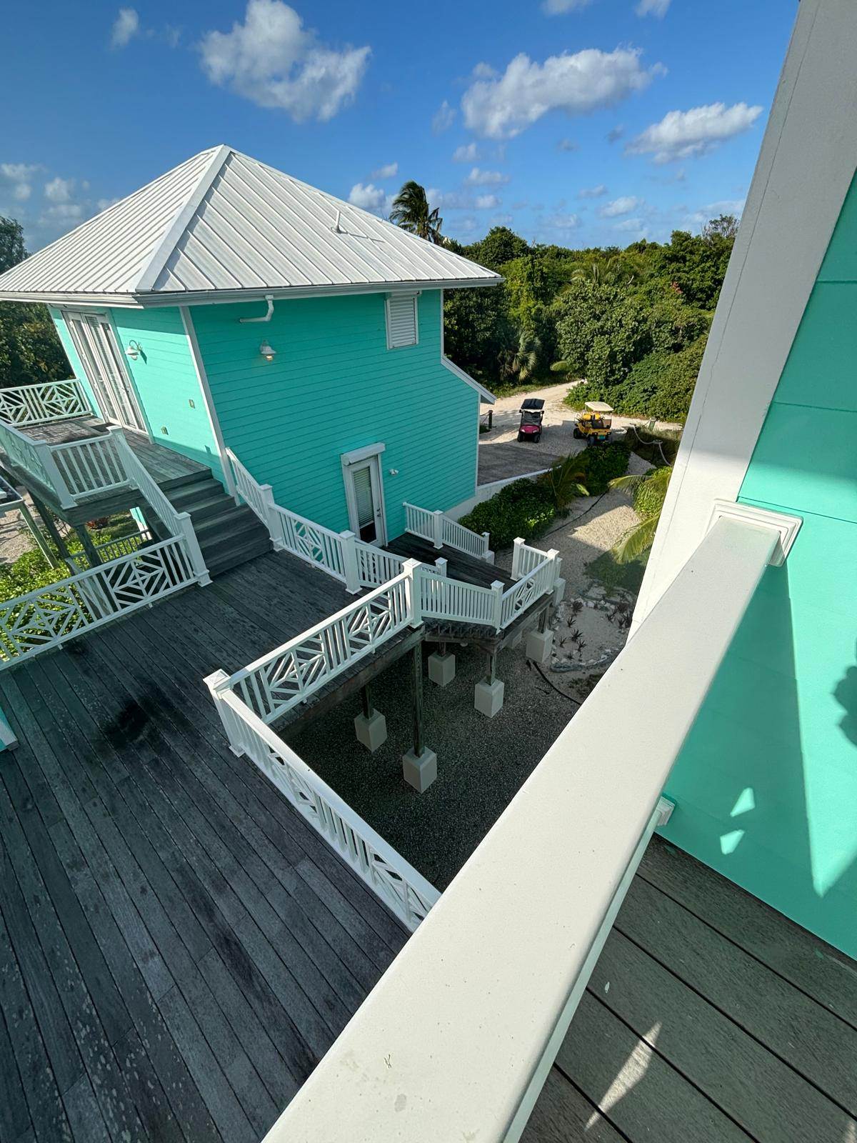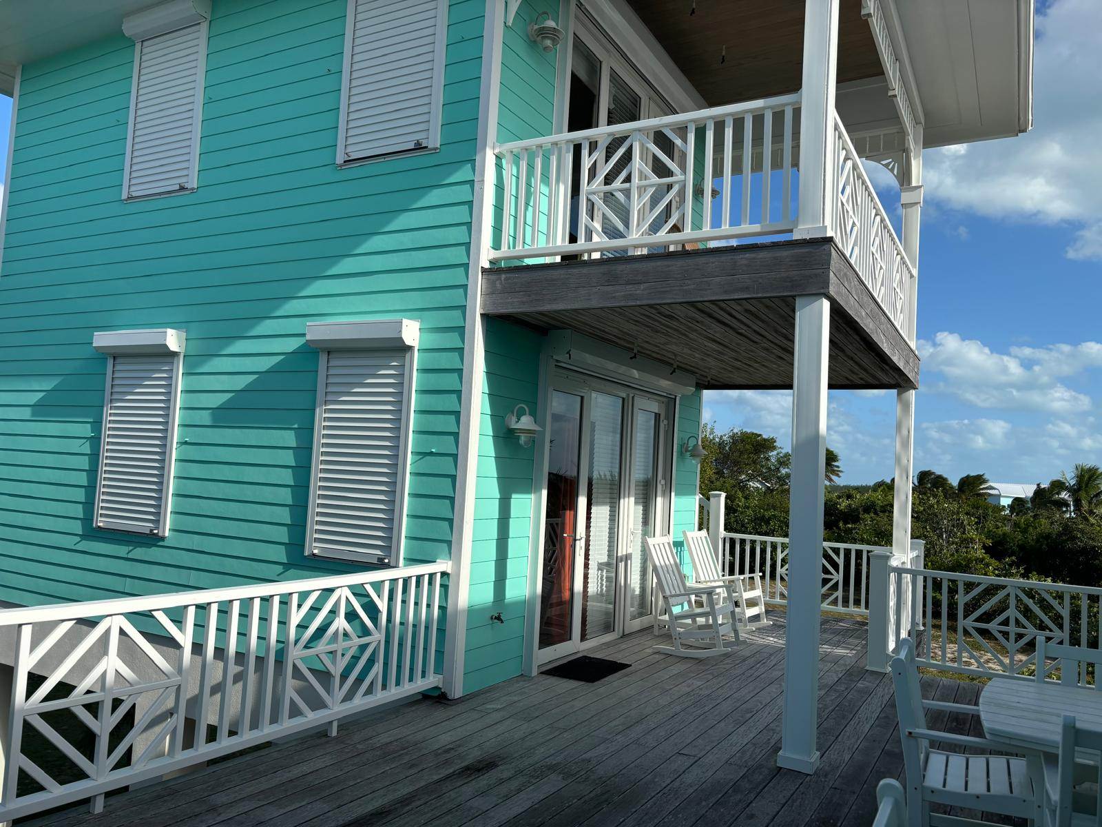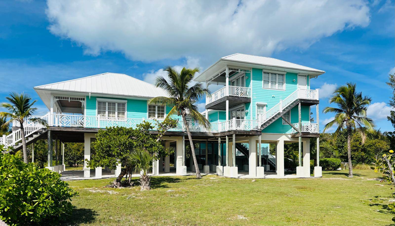 Wrapped in nearly 2,300 square feet of elevated decks and covered outdoor spaces, the home offers countless spots to relax — whether it’s enjoying your morning coffee overlooking the Sea of Abaco, finding a shady nook with a book, or sharing rum punches as the light fades over Gillam Bay.